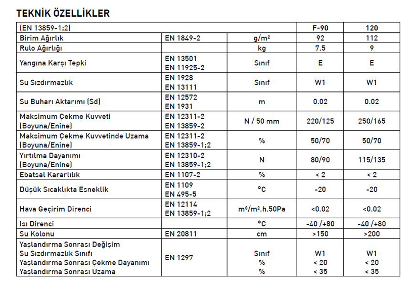 • Yaşlandırma testi sonuçlarına göre yapının maruz kaldığı UV ve ısı etkilerine karşı dayanıklı uzun ömürlü bir üründür.